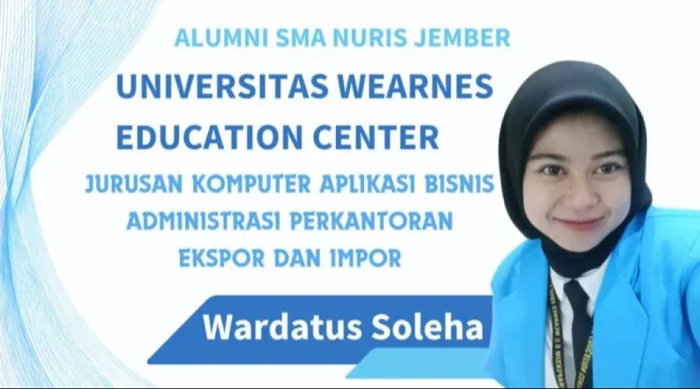 Pesantren Nuris – Dalam dunia pendidikan, berita baik selalu membawa harapan baru. Salah satunya datang dari alumni SMA Nuris Jember, Wardatus Soleha, yang akrab disapa Warda. Setelah lulus dari Jurusan IPS pada tahun 2023, Warda kini melanjutkan studinya di Universitas Wearnes Education Center, Jurusan Komputer Aplikasi Bisnis Administrasi Perkantoran Ekspor dan Impor.